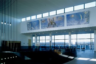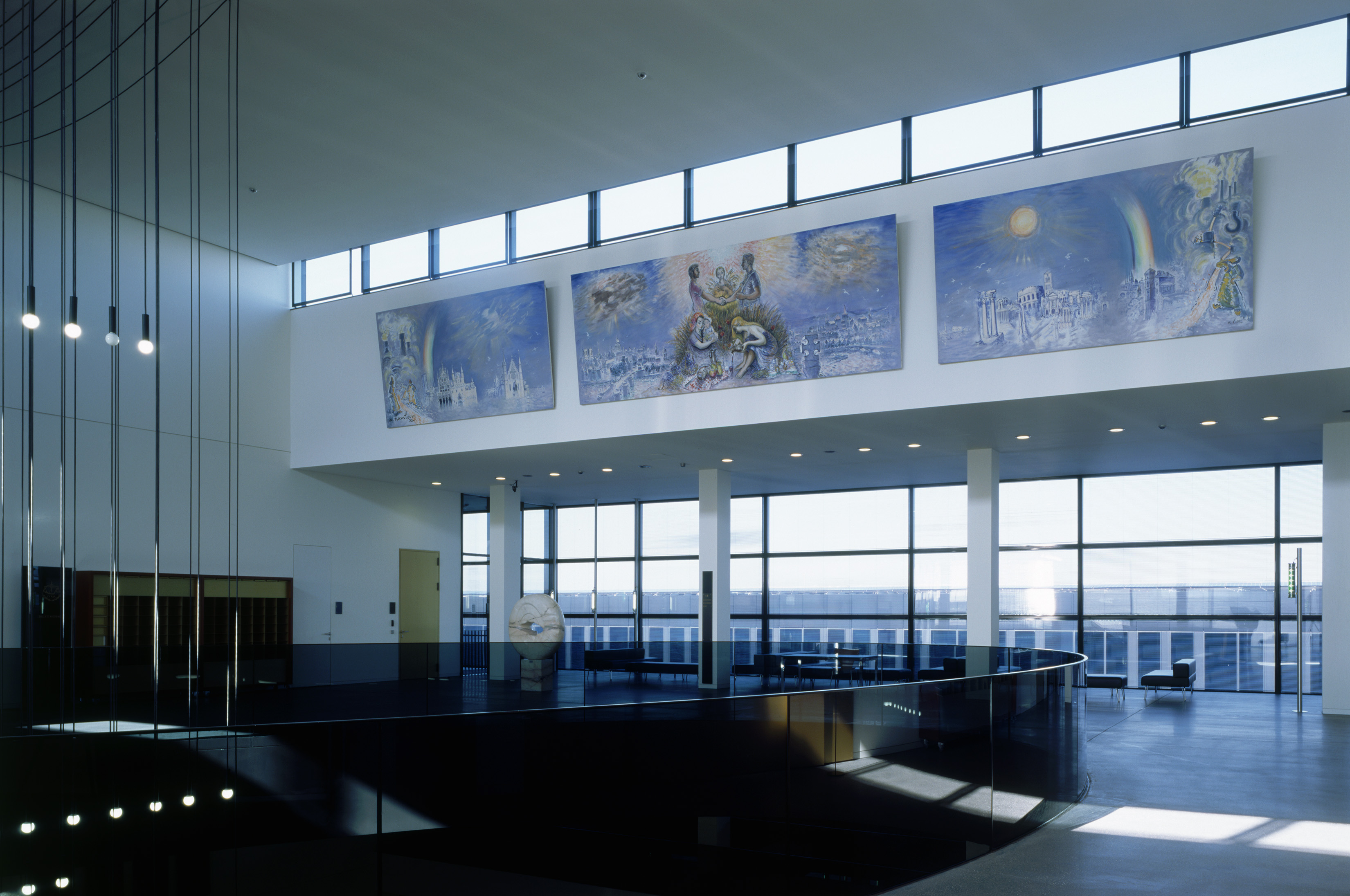 Постоянен заем / Люксембург / 1973 ǀ Два триптиха | Масло върху платно, закрепено с маруфлаж върху дървени пана | 205 x 551 cm (централни пана) и 205 x 386 cm (странични пана) | Превод на заглавието (BG) - Справедливост и мир